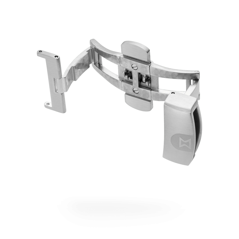 Le boîtier en acier inoxydable mesure 45 mm de diamètre pour une épaisseur de 16 mm. Son poids de 160 g reflète une construction solide pensée pour résister aux chocs et aux pressions élevées. Le travail de finition alterne surfaces brossées et éléments polis, ce qui donne un aspect visuel structuré. Une lunette tournante en céramique noire encadre le cadran et dispose d’un système de verrouillage (bezel lock), utile pour éviter tout mouvement accidentel lors d’activités dynamiques. On retrouve également une couronne vissée et deux boutons poussoirs, renforcés par un double joint torique. Sur le côté opposé, la soupape à hélium permet de relâcher la pression en cas d’utilisation en plongée à saturation. Le fond transparent, vissé lui aussi, donne accès au mouvement visible sans compromettre l’étanchéité.