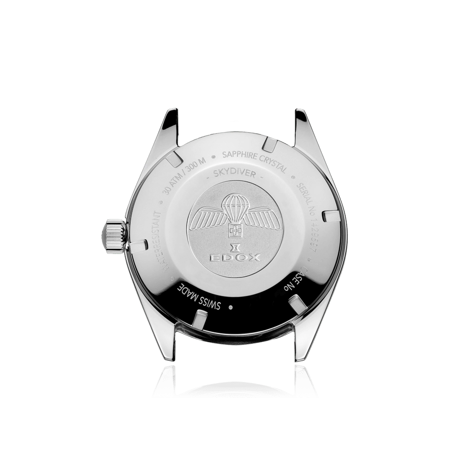Conforme à la tradition Edox, cette Skydiver affiche une étanchéité de 30 ATM (300 mètres). Ce niveau permet l’utilisation lors de plongées avec bouteilles, au-delà de la natation ou de la plongée libre. L'étanchéité repose sur un ensemble de composants techniques, dont une couronne vissée et le système à double joint développé par Edox.