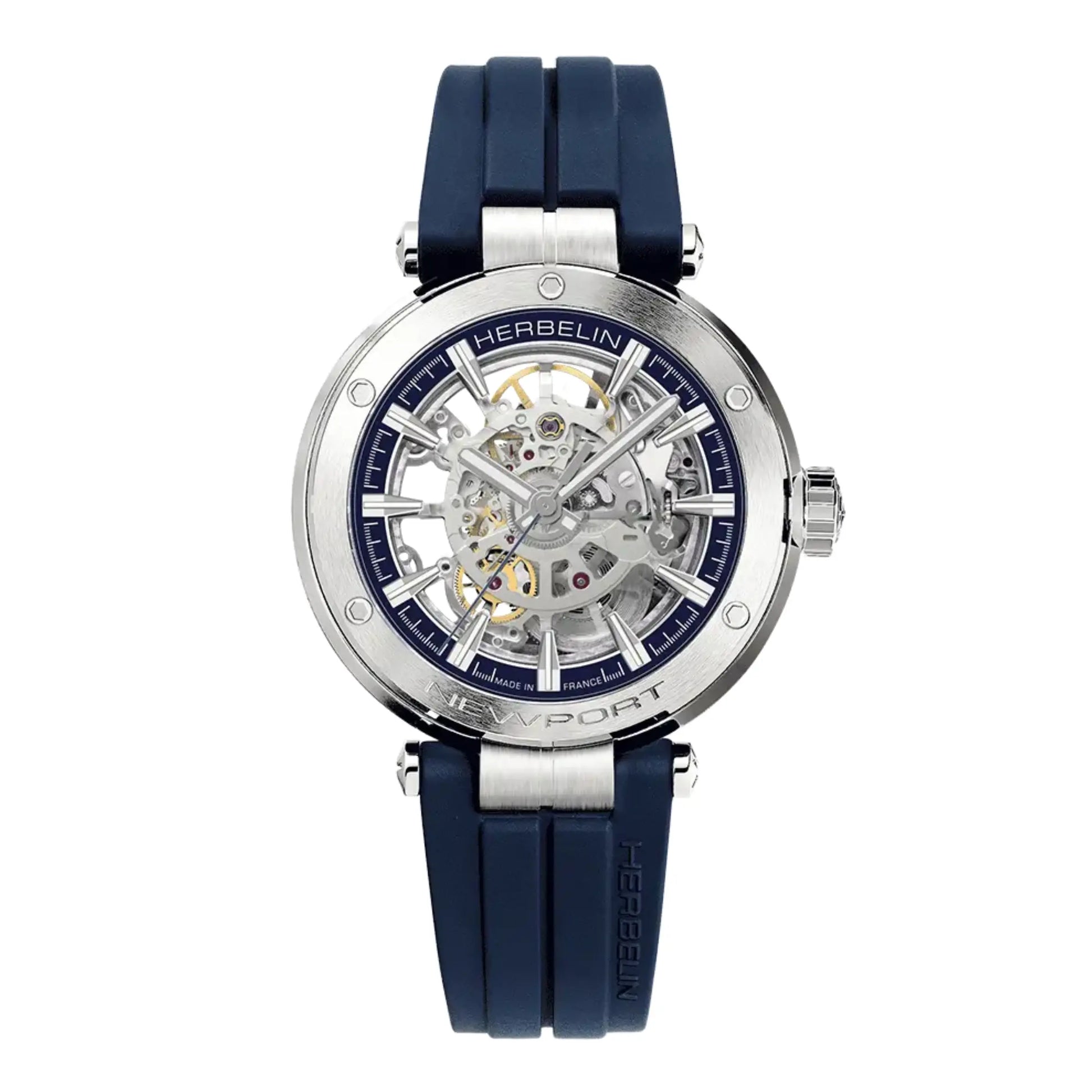 La montre Herbelin Newport Automatic 1868SQ15CB est une pièce horlogère appréciable qui allie précision suisse et savoir-faire français. Son boîtier en acier inoxydable, son cadran squelette, son mouvement automatique Sellita et son bracelet en caoutchouc bleu en font un choix de qualité pour les amateurs de montres sportives et squelettes.