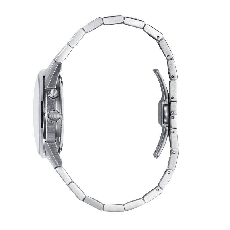 Le bracelet en acier inoxydable, avec sa finition brossée, est un choix parfait pour ceux qui cherchent confort et durabilité. Sa couleur acier s'accorde harmonieusement avec le boîtier et le cadran, créant un ensemble cohérent et attrayant. La boucle déployante papillon assure une fermeture sécurisée et facile à manipuler, ajoutant une touche pratique à l'ensemble.