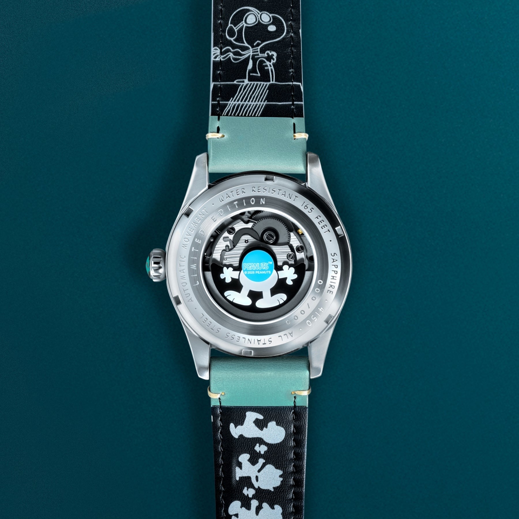 Mouvement automatique japonais à masse oscillante — identique à celui de la AV-4150-02. Le remontage se fait via les mouvements naturels du poignet, sans pile. La réserve de marche n'est pas communiquée par la marque. La masse oscillante représente les bras et les jambes de Snoopy : à chaque mouvement, le personnage semble s'animer, ce qui se observe à travers le fond transparent. Fonctions affichées : heures sur 24h, minutes, secondes et date.