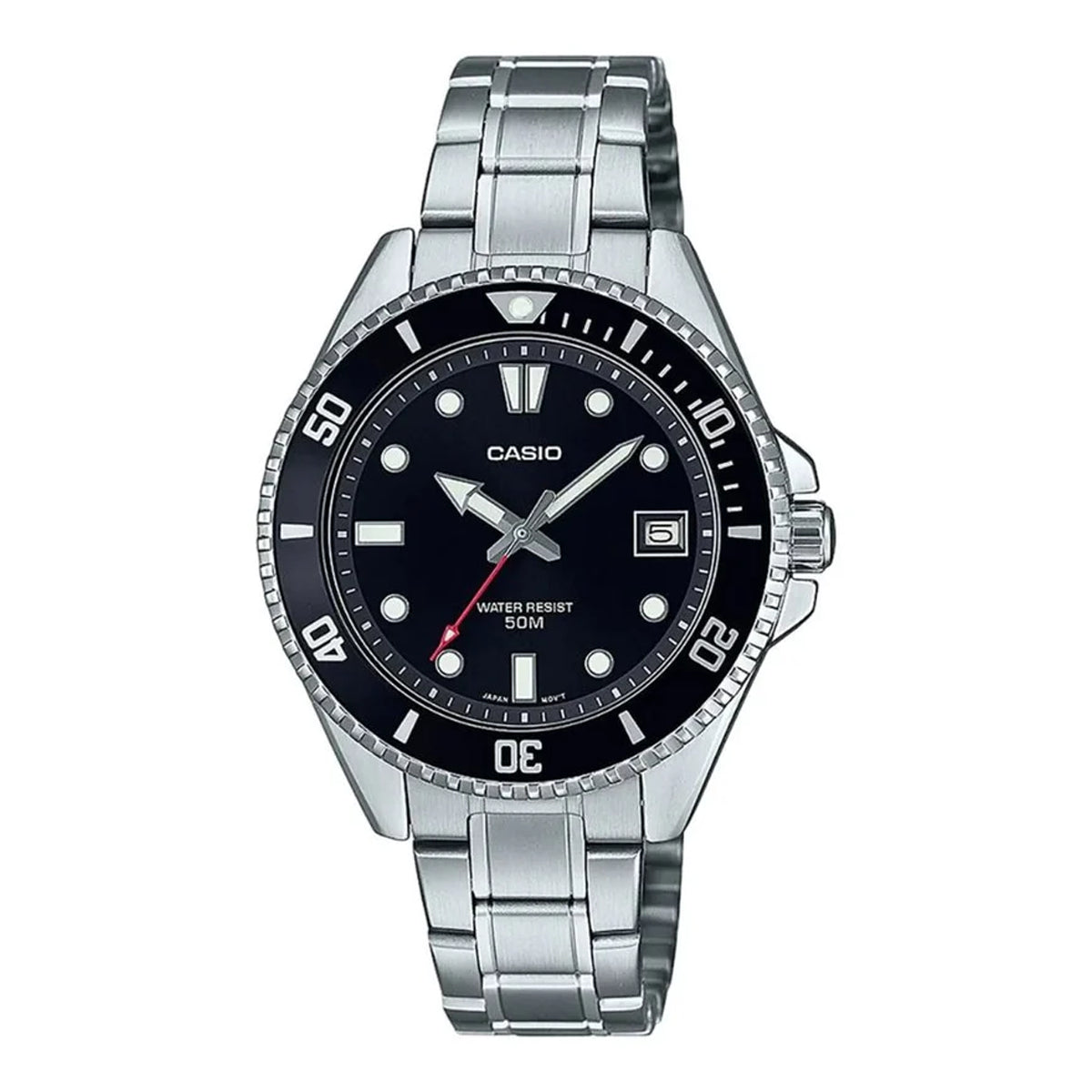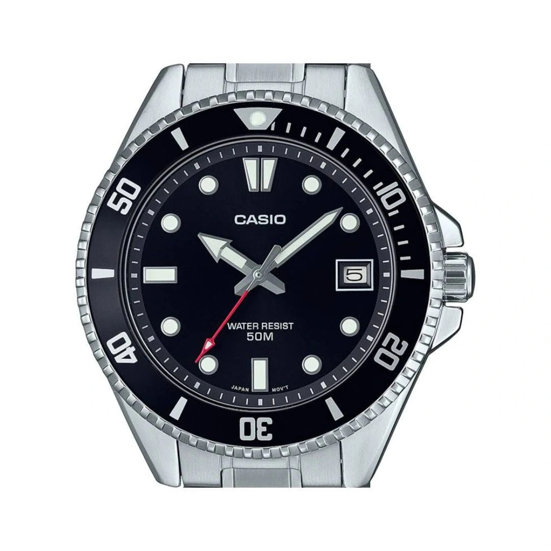 Le bracelet est en acier inoxydable, ajoutant une touche de robustesse à l'ensemble. La couleur grise du bracelet se marie parfaitement avec le boîtier noir, et sa finition, mélangeant acier brossé et acier poli, donne à la montre un aspect à la fois classique et moderne. Son fermoir est une boucle déployante en argent, assurant que cette beauté reste bien en place sur votre poignet. La Casio MDV-10D est une montre de plongée qui impressionne tant par son esthétique que par ses fonctionnalités. Chaque détail a été soigneusement pensé, du cadran lumineux au bracelet solide. Pour ceux qui cherchent une montre qui peut plonger profondément tout en ayant l'air incroyable, la recherche est terminée.