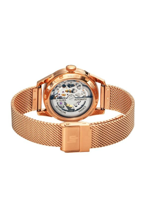 Le bracelet en acier inoxydable de couleur rose apporte une touche de douceur et de féminité à l'ensemble. Son fermoir à coulisse assure un ajustement précis et confortable au poignet. La couleur rose du bracelet et du fermoir s'accorde parfaitement avec le boîtier et le cadran, créant une harmonie visuelle séduisante.