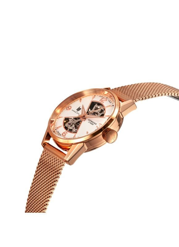 La Montre Lip Himalaya 33 mm Sablier 671684 est une pièce qui s'inscrit dans une esthétique moderne et féminine. Son boîtier en acier inoxydable, son cadran blanc sous verre saphir, son mouvement automatique Miyota fiable, et son bracelet en acier rose en font un choix élégant pour celles qui cherchent à allier style et fonctionnalité. Son design ajouré en forme de sablier ajoute une dimension unique, faisant de cette montre un plaisir à porter au quotidien.