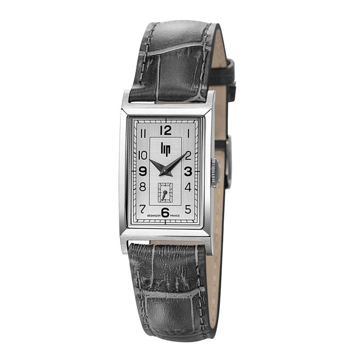 La montre LIP Churchill T18 Chrome 671000 est la montre élégante phare de la maison horlogère française de Besançon. Ce modèle T18 Churchill est réédité depuis les années 1988 et il conserve toujours un charme vintage qui plaît beaucoup. La montre met à l'honneur l'esprit Art Déco du début des années 30 avec sa forme rectangulaire et ses proportions parfaites. La Churchill T18 est une montre historique de la marque LIP puisqu'elle était à l'époque extrêmement moderne et innovante. D'ailleurs, le surnom "Churchill" vient du fait qu'un modèle entièrement fait en or fut offert à Sir Winston Churchill en 1948.
