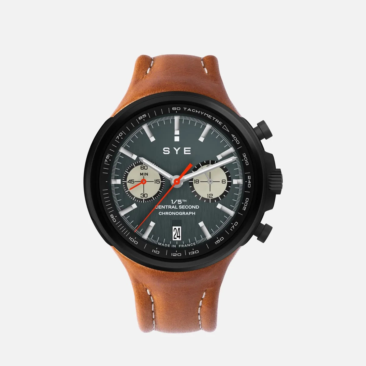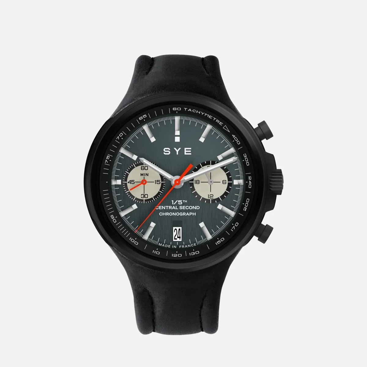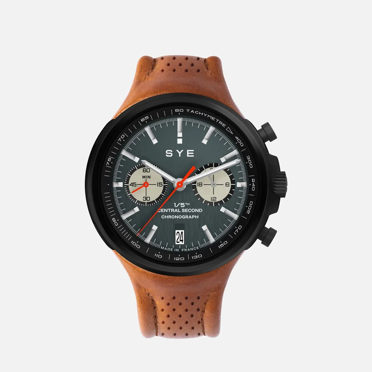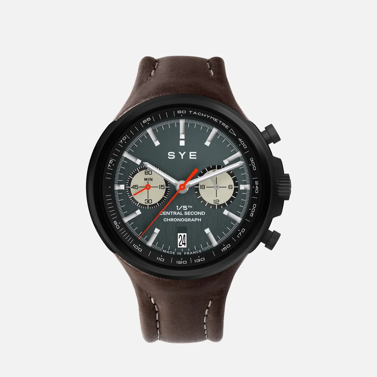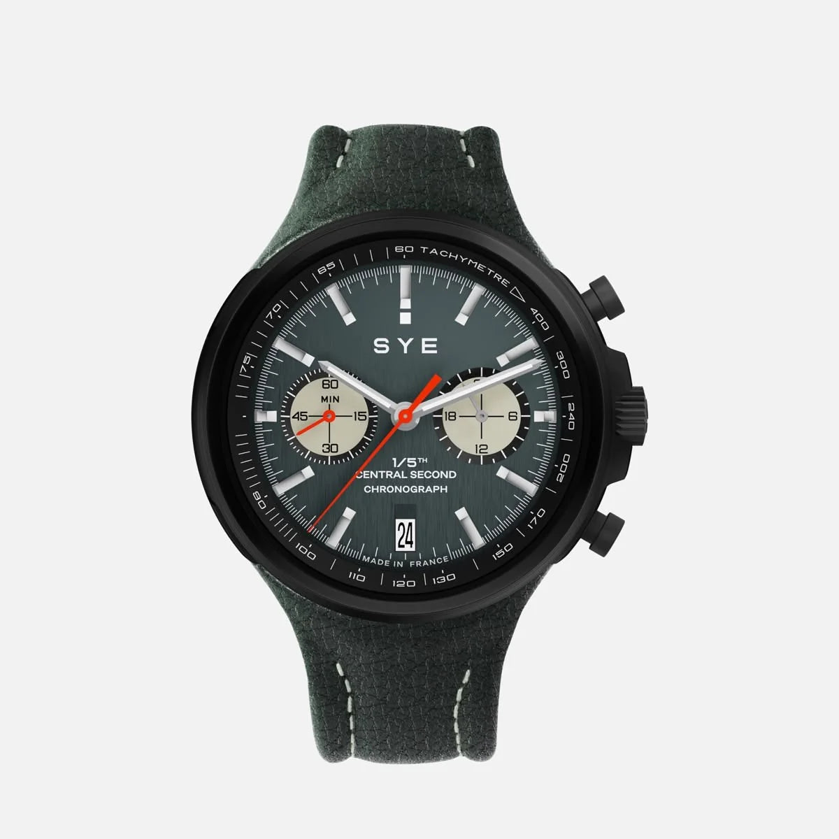 limitée à 50 exemplaires, la SYE Chronograph CUT 7 Black DLC reprend l’esprit des modèles MOT1ON de la marque tout en intégrant un chronographe méca-quartz. Son style s’inspire directement du monde automobile, avec des références aux carrosseries profilées et aux tableaux de bord historiques. Le boîtier reçoit un revêtement DLC noir et conserve les lignes caractéristiques de la collection CUT 7, tandis que le cadran joue sur un vert foncé brossé vertical et des touches beiges pour rappeler les teintes des voitures de course britanniques.