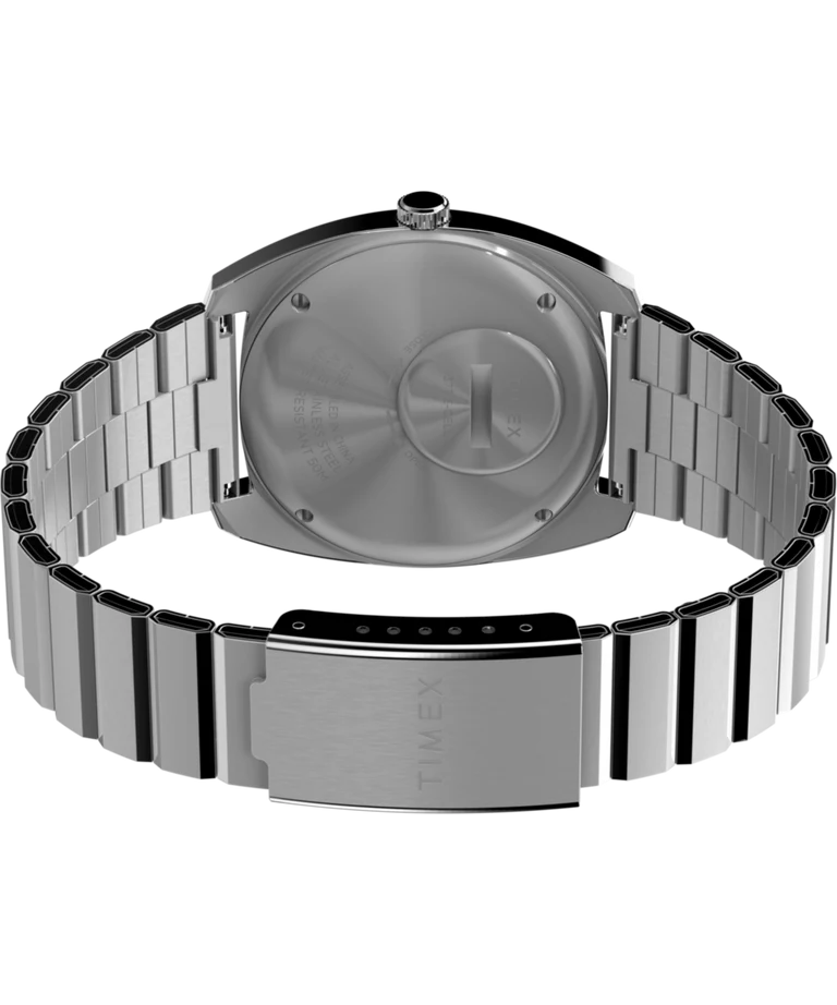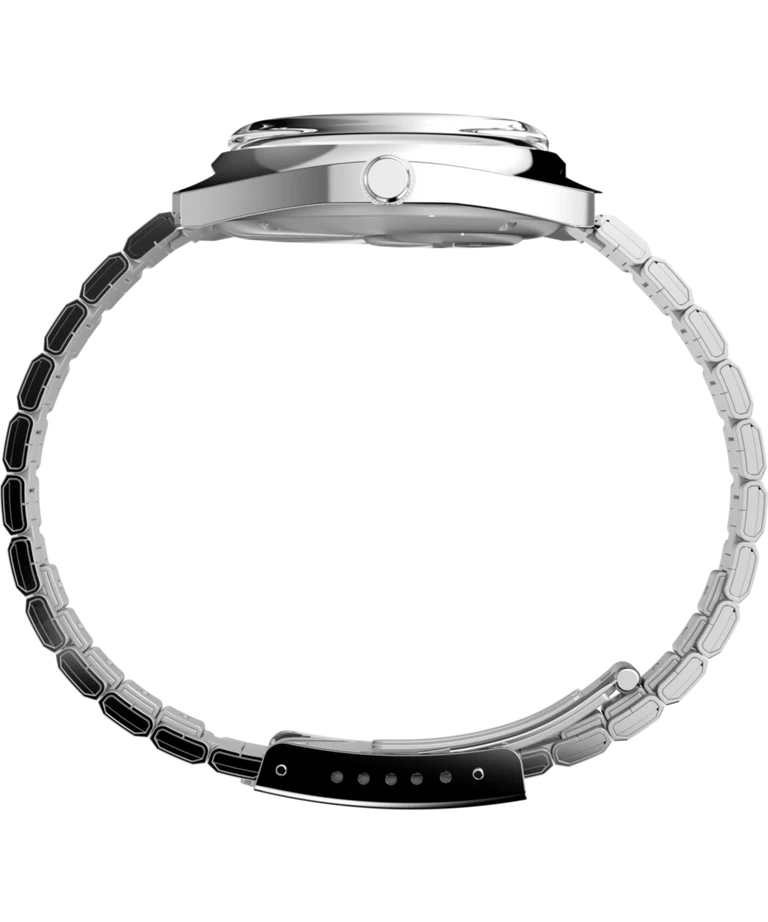 Le bracelet est conçu en acier inoxydable, avec une finition brossée sur les maillons qui contraste légèrement avec les surfaces polies du boîtier. Il mesure 20 mm de large à l'entrecorne et repose confortablement sur le poignet. Il est équipé d’une boucle déployante, pratique pour sécuriser la montre tout en assurant une ouverture rapide. Ce type de bracelet rigide s’adapte progressivement à la forme du poignet et conserve sa tenue dans le temps. Son style prolonge naturellement l’aspect rétro de l’ensemble, dans une approche minimaliste.